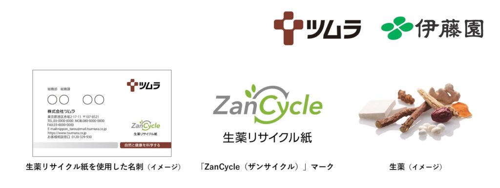 両社の共同研究により、漢方製剤の製造工程において発生する「生薬残渣」を活用した「生薬リサイクル紙」の開発に成功しています。