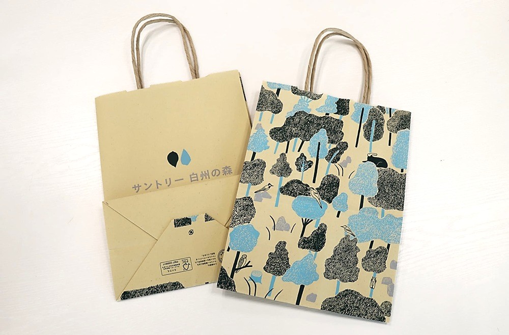 このウイスキーペーパーを使用したショッパー「白州の森 ウイスキーペーパー紙袋」が、白州蒸溜所内のショップで販売されているそうです。